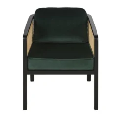 Maisons Du Monde Fauteuils Fauteuil En Velours Vert Cannage En Rotin Et Bois De Bouleau Noir