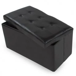 Tectake Poufs Banc Coffre De Rangement Pliable Grand Aspect Cuir 80x40x40cm Noir